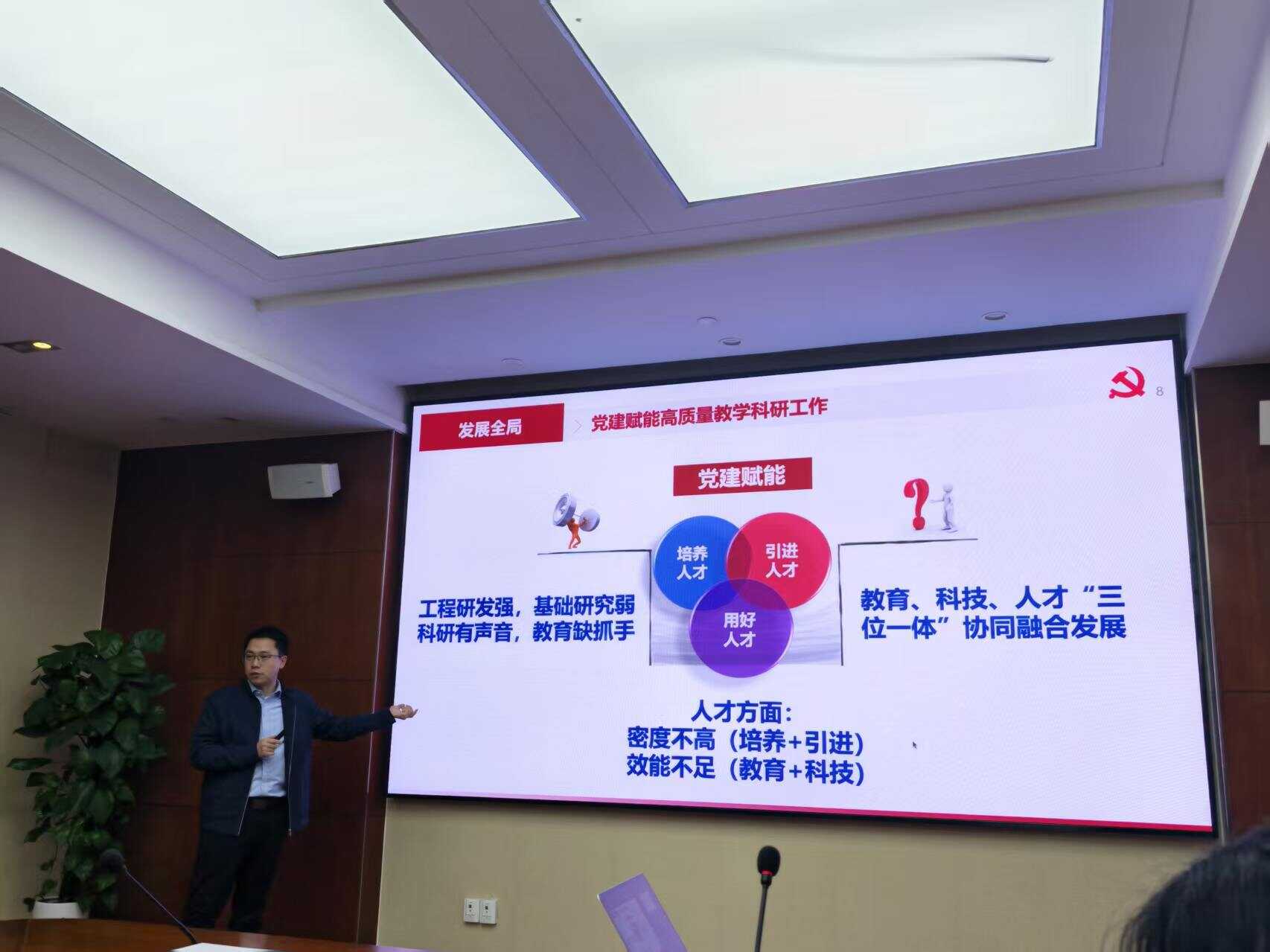 培训环节,同济大学江涛教授作《做好研究生党团班骨干工作的实践与方法》报告,分享了如何将教育、科技、人才“三位一体”落到实处,如何让党建与科研深度融合。研究生2028党支部书记万珍珍听后说:“有温度的关怀最有力量。江老师把支部建在科研团队上,用活力凝聚每一个人。作为支部书记,我也要努力让支部成为成员成长的沃土。”