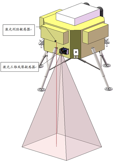 在14日晚的软着陆过程中,激光测距敏感器在着陆器距离月面35公里高度时开机,距离数据和遥测参数正常,在正式进入15公里动力下降轨道前建立稳定工作状态,持续为着陆器提供了精确、稳定的轨道高度数据,各测距方向的工作通道依次准确自动切换,以0.2m的高程测量精度有力的保障了着陆器成功落月。