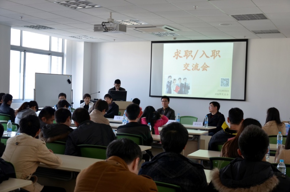 3月15号下午三点,求职入职经验交流会在物理楼1313教室如期举行。会议由研究生会主席宋伟清主持,研究生部黄曦老师向特邀嘉宾们表示热烈欢迎。