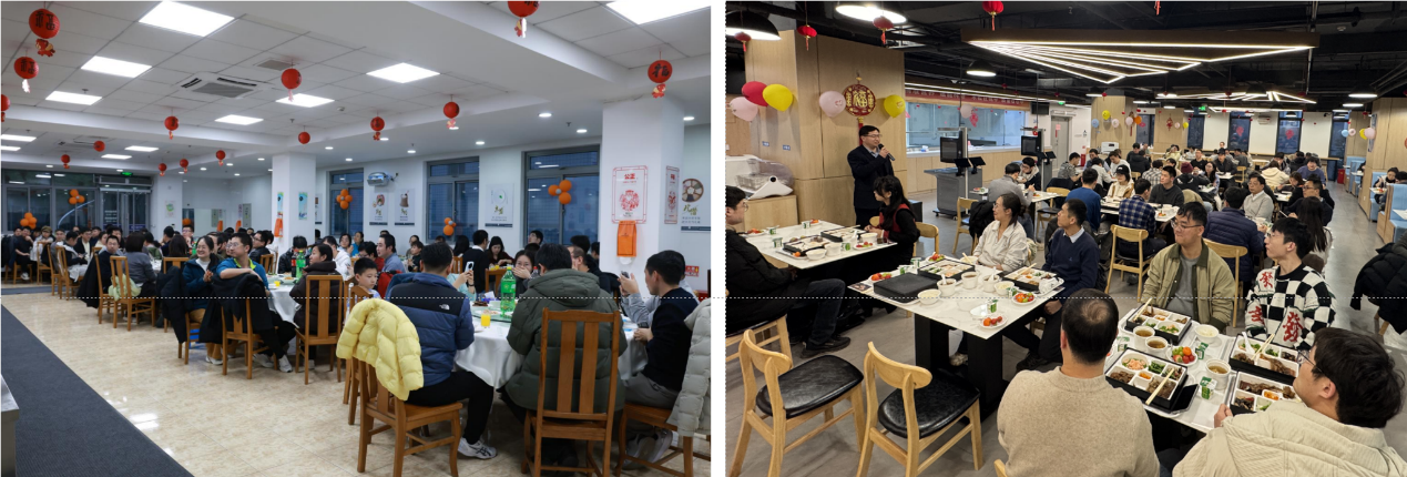 春节加班职工“年夜饭”现场(左:虹口园区 右:嘉定园区)